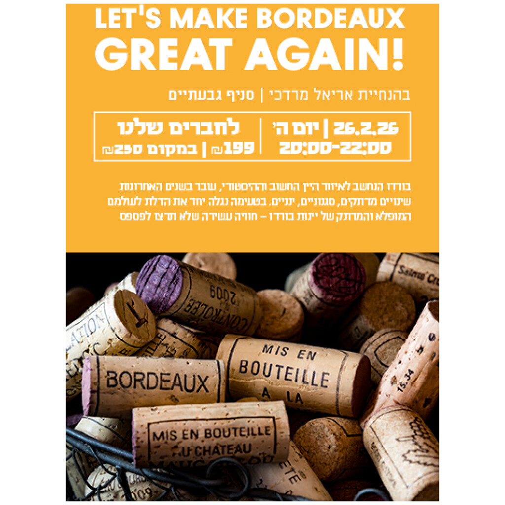 Let’s Make Bordeaux Great Again! טעימת בורדו 26.2 גבעתיים