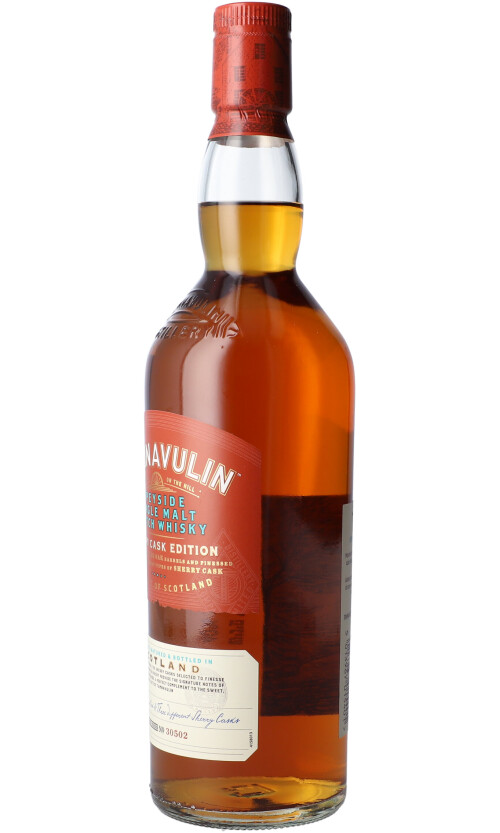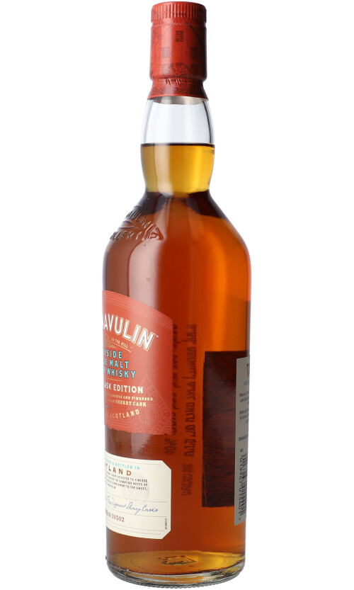 אלו אשר מכירים את הוויסקי הראשון שהמזקקה הוציאה מאז נפתחה מחדש ב-2007 הדאבל קאסק יודעים שגם הוא עבר פיניש בחביות אקס-שרי. אז במה שונה השרי קאסק אדישן? ובכן כאן מדובר בחביות אקס-שרי אולורוסו משלוש בודגות שונות והדגש על השרי גדול יותר. אמנם שרי אולורוסו מיוצר מענבי פלומינו בלבד ובאזור מסוים בלבד – משולש השרי שבדרום מערב חבל אנדלוסיה בספרד אך כל בודגה מייצרת שרי מעט שונה וכאן שילבו את המאפיינים של שלושתן אל מנת להגיע לקשת טעמים מרשימה יחסית לגילו הצעיר של הוויסקי.
