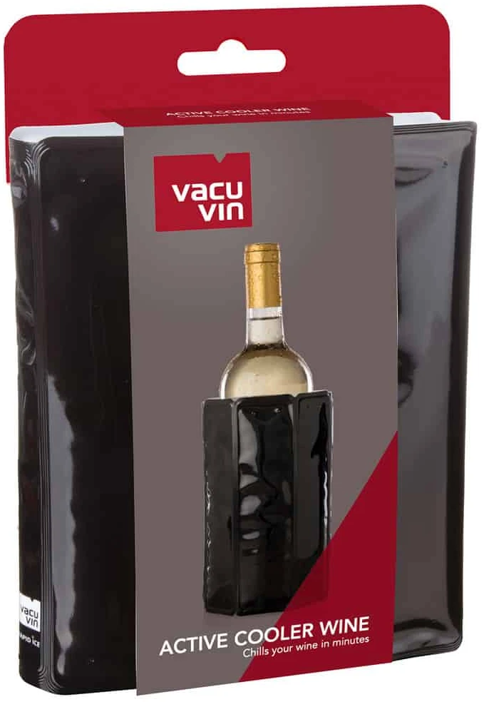 מקרר Vacu Vin Active Cooler Wine Elegant Black מאפשר קירור מהיר של בקבוק יין ללא צורך בקרח. המכשיר כולל שרוול קירור רב־פעמי שמכניסים למקפיא לפחות 6 שעות, לאחר מכן מכניסים לתוך מעטפת קשיחה אלגנטית בצבע שחור שמצויה על שולחן או בר – הבקבוק מקורר בתוך דקות ושומר על טמפרטורה אופטימלית לאורך זמן.