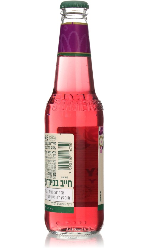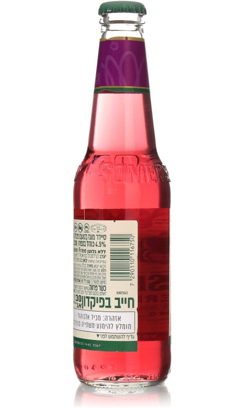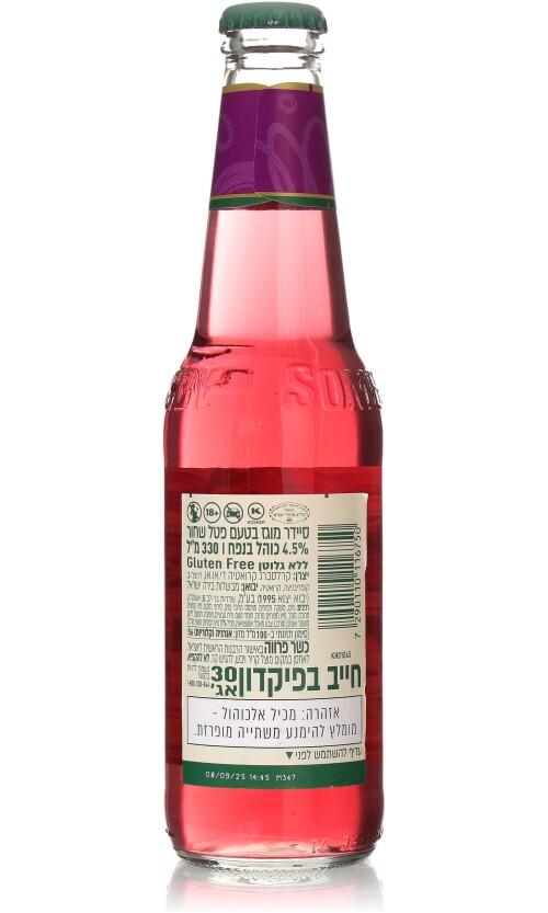 מים, משקה תפוחים מותסס מרוכז ( מים, סירופ גלוקוז, רכז תפוחי עץ) סוכר, רכז תפוחי עץ, פחמן דו חמצני, חומרי טעם וריח טבעיים, חומצה: חומצת לימון, חומר משמר: אשלגן סורבט, צבעי מאכל: קרמל ואנטוציאנין. מכיל 17% מיץ תפוחים (עשוי מרכז)