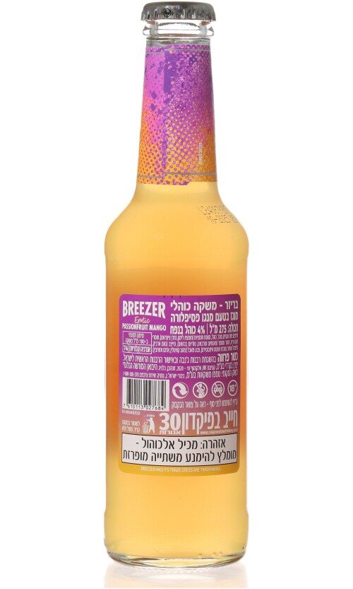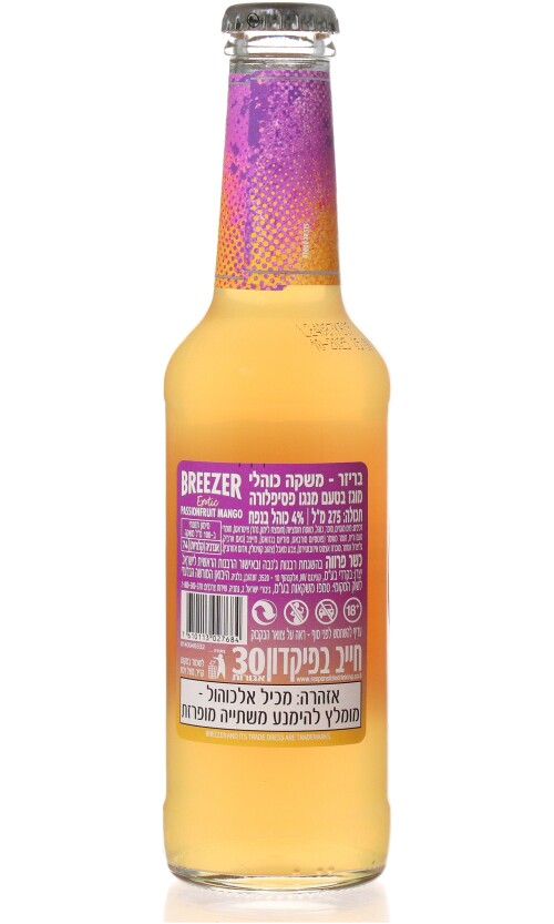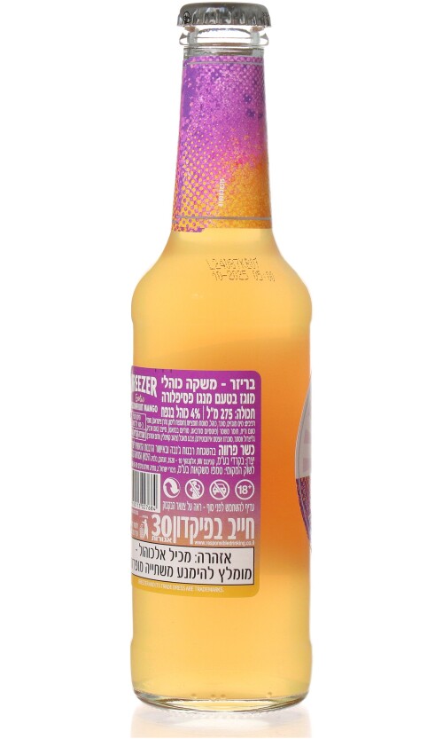 משקה כוהלי מוגז בטעמי מנגו-פסיפלורה , 4% אלכוהול – מיוצר בבלגיה.