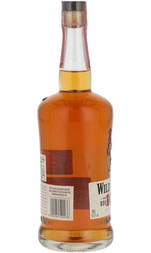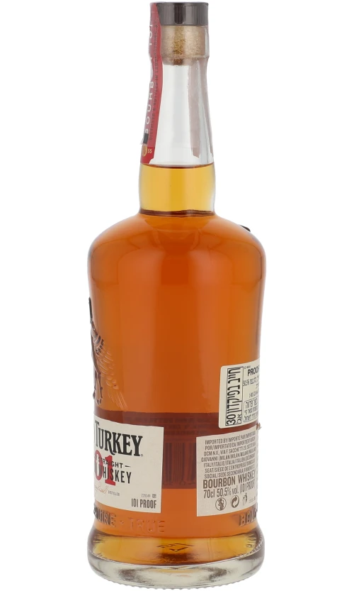 החוזק האלכוהולי של ויסקי וילד טרקי אינו מתבטא באף שמציג בעיקר ניחוחות של וניל סוכריות חמאה ועץ קלוי. בחך החוזק ניכר בגוף שלו – יחסית לבורבון הוא מאוד מלא ועגול. המתיקות קרמלית ממלאת את הפה תחושה חמאתית וחריפות קלה של פלפל. הסיומת ארוכה ויבשה העץ שוב ניכר בה ומשהו שקצת מזכיר סיגר. לא לחינם הוא מיוצר כל כך הרבה שנים בורבון שהוא קלאסיקה אמיתית.