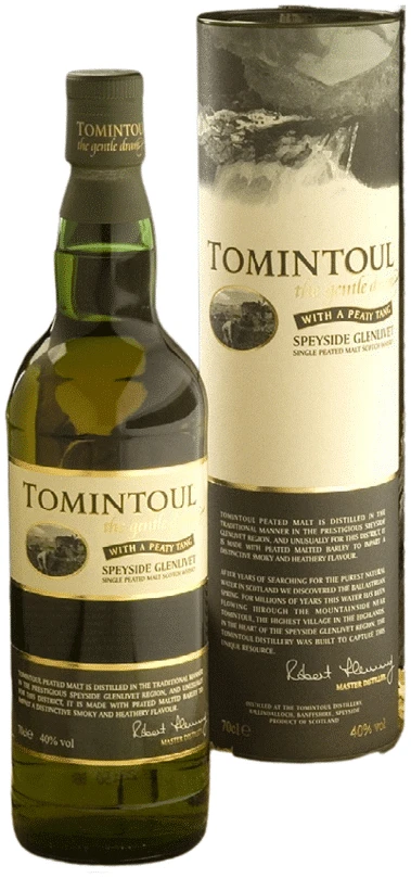 Tomintoul with a peaty tang Speyside Glenlivet single peated malt scotch whisky