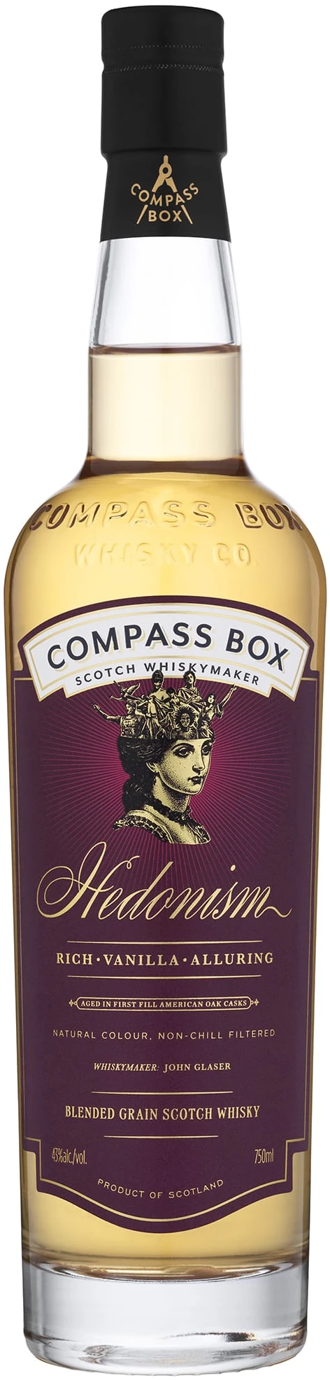הדוניזם הוא המוצר הראשון אשר ג'ון ייצר בקומפס בוקס. בניגוד למהדורות אחרות מתחילת דרכה של החברה אשר הפכו ברבות הימים לפריטים נחשקים עבור אספנים את ההדוניזם ממשיכה קומפס בוקס לייצר. מדובר בבלנדד גריין – כלומר ערבוב של גריין וויסקי מסקוטלנד ממספר מזקקות.