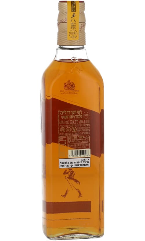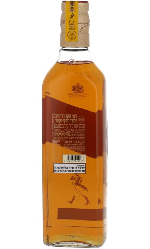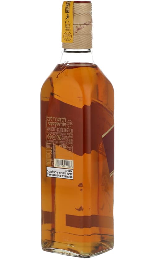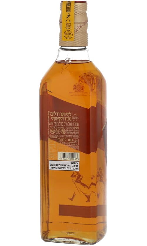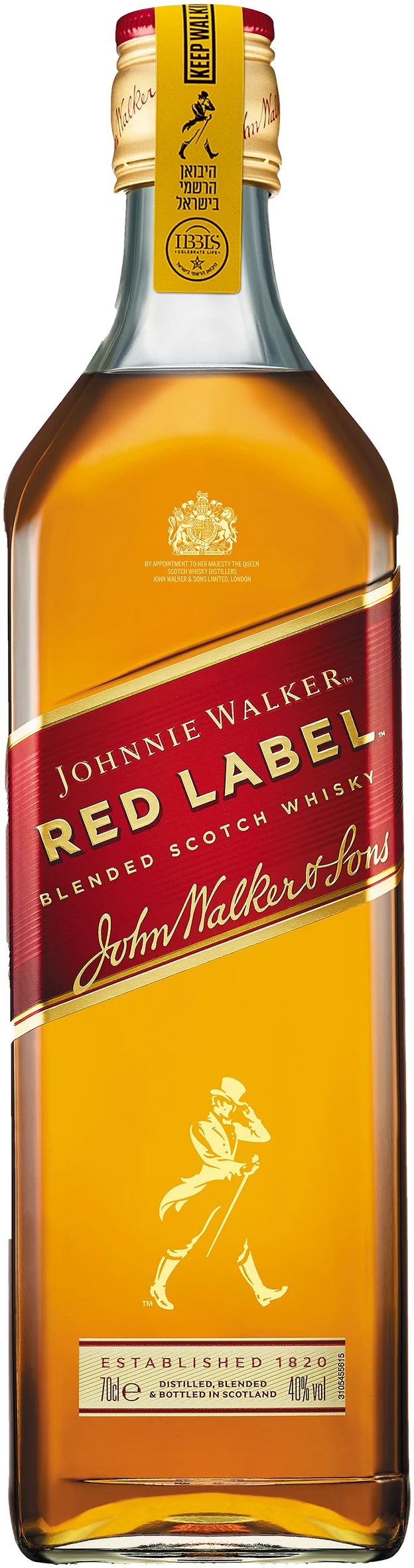 ג׳וני ווקר רד לייבל הוא אחד הוויסקים המפורסמים בעולם, סמל לאנרגיה צעירה ולמסורת בלנדינג סקוטית עתיקת יומין. התערובת משלבת עד 35 סוגי וויסקי מאלט וגריין ממזקקות שונות ברחבי סקוטלנד, ומציעה טעמים מאוזנים של תבלינים, וניל, תפוח ירוק ועץ קלוי. הסיומת חמימה עם נגיעה עדינה של עשן, המעניקה חוויית שתייה עשירה ונגישה לכל חובב וויסקי.