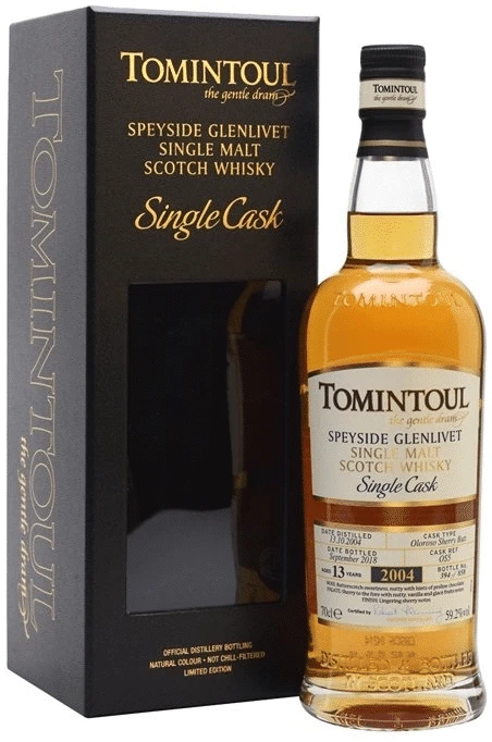 Tomintoul Speyside Glenlivet single malt scotch whisky single cask aged 13 years 2004