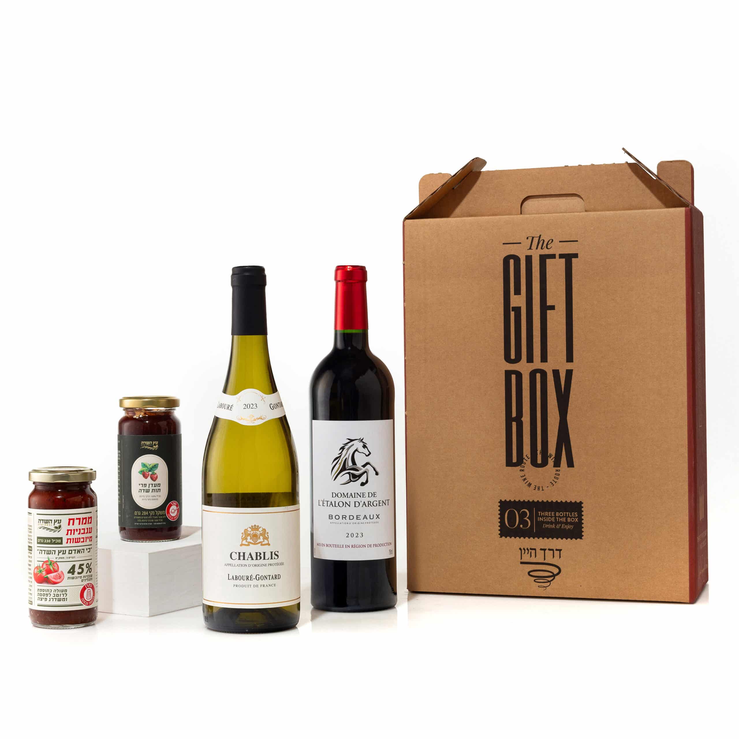 חוויית יין צרפתית קלאסית במארז חגיגי הכולל שני יינות כשרים מאזורי היין היוקרתיים בורדו ובורגון. שילוב מושלם של אדום עוצמתי ולבן אלגנטי, בשילוב 2 מעדנים מביץ עץ השדה : פירות יער ועגבניות מייובשות לחגיגות הפסח ולמתנה יוקרתית.