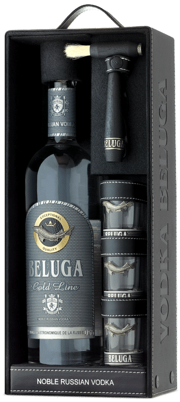 אריזת עור מהודרת במהדורה מוגבלת! בלוגה גולד ליין עוברת חמישה שלבי טיהור בפחם אקטיבי טבעי ובאבן קוורץ סיבירית וכסף טהור.