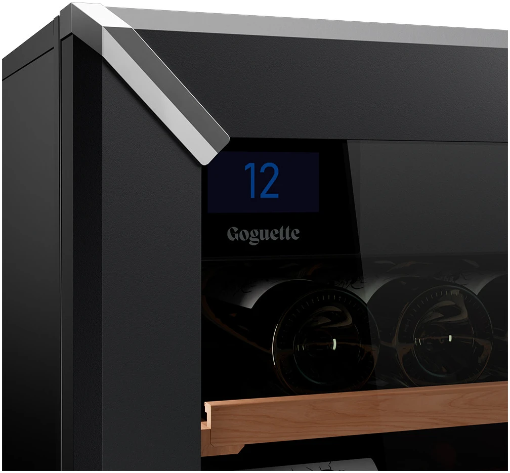 מקרר היין של Goguette מציע אחסון אידיאלי עם טמפרטורה אחידה הניתנת לכוונון בין 5° ל־18°. המקרר שומר על סביבה מבוקרת ויציבה, מציג את הטמפרטורה הפנימית בפועל ומצויד בפונקציית חורף, חיישן איכותי ואזעקות במקרה של שינוי חריג.